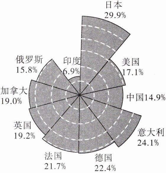 人口老龄化逐渐成为世界人口的发展趋势,当一个国家65岁及以上的人口超过总人口的7%时,这个国家即进入人口老龄化社会。下图示意2022年部分国家65岁及以上人口占本国人口比重。读图,完成11~12题。
