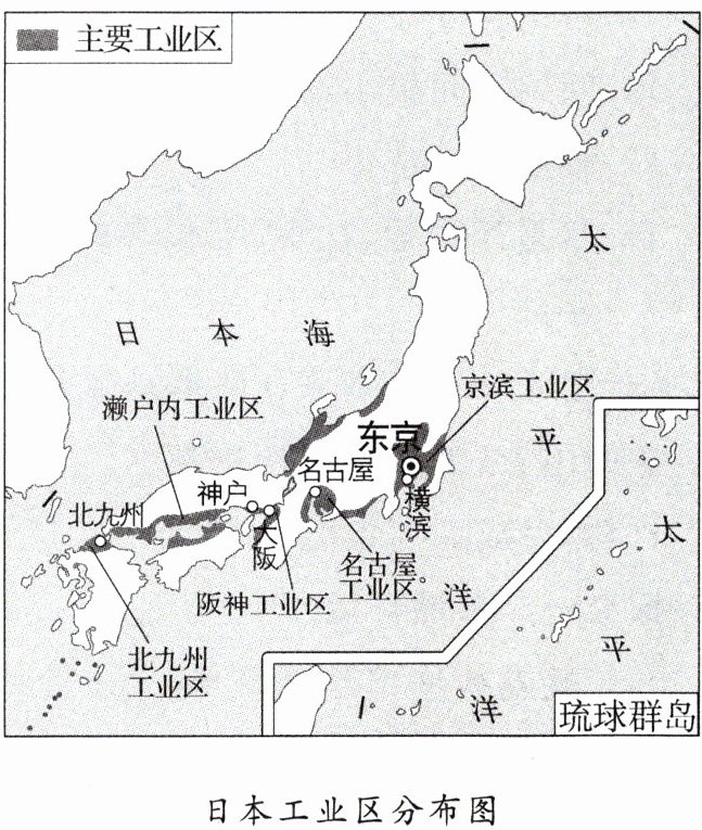 (3)集中分布地区:太平洋沿岸和濑户内海沿岸。原因:便于原料的进口和工业制成品的出口。