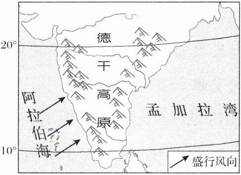 印度是中国最重要的邻国之一,下图为德干高原位置略图。读图,完成7~8题。