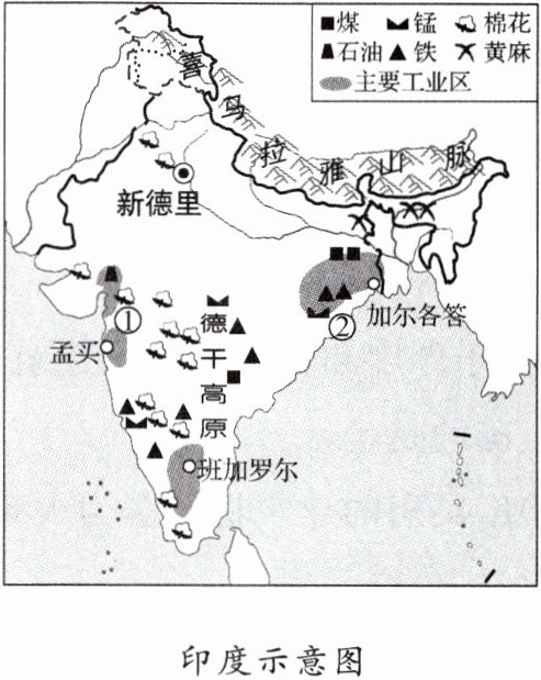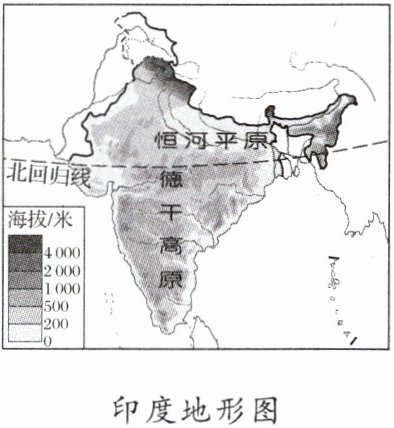 (1)班加罗尔位于印度南部的$____________($填地形区),小明在网上了解到这座城市位于低纬度地区,海拔1 000米左右,四季如春、气候宜人,其主要影响因素是________。