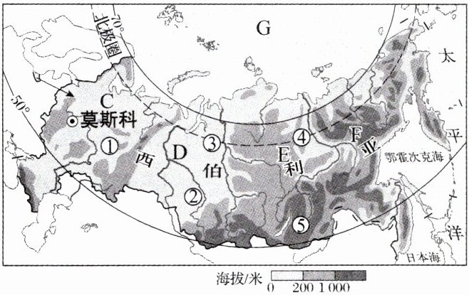 (2)海陆位置:横跨亚欧大陆的______部,北临G______洋,东濒太平洋。陆上邻国众多,与我国有绵延很长的______线。