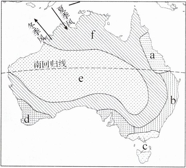 (2)气候:大部分处于热带、亚热带,气候______________;气候类型呈______________分布。a________________气候,b______________气候,c________________气候,d____气候,e______________气候,f______气候。