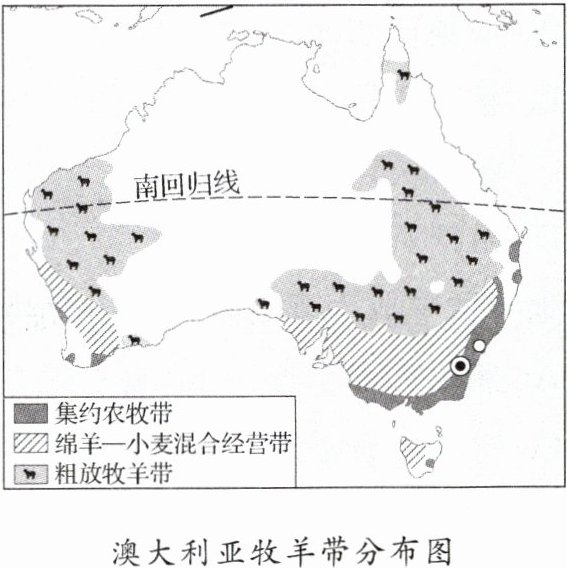 (1)读澳大利亚牧羊带分布图,概括澳大利亚农业的特点。
