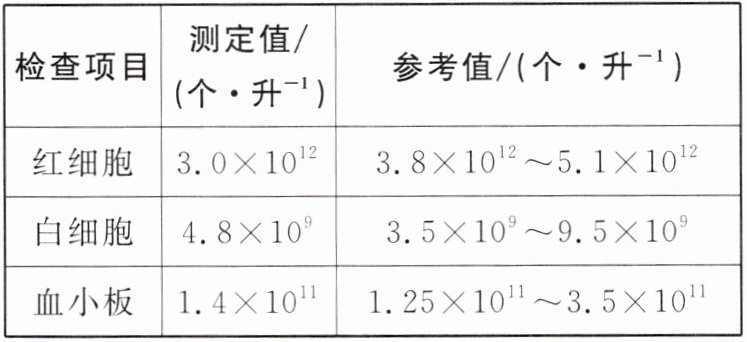 4. 小雅最近常表现出精神不振、头晕、面色苍白等症状,妈妈便带她到医院进行身体检查,下表是她的血常规检验报告单的一部分。