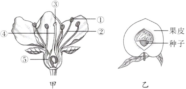 下图是桃花(图甲)和桃子(图乙)的结构示意图,下列有关叙述正确的是( )