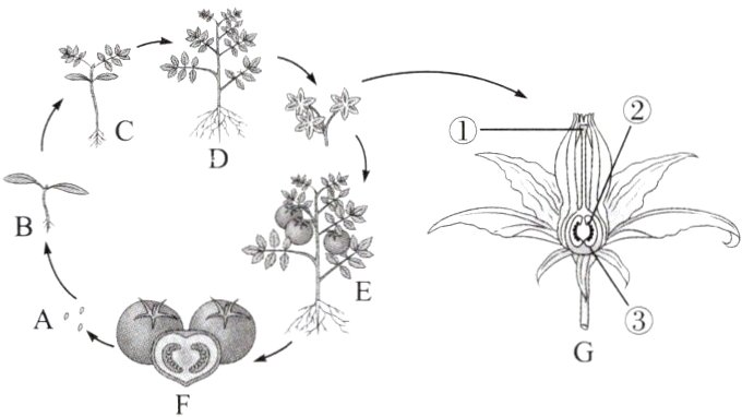 番茄是一年生或多年生草本植物,其果实含有丰富的营养。每人每天食用50~100克鲜番茄,即可满足人体对几种维生素的需要。下图为番茄的生活史,请据图回答下列问题。