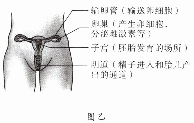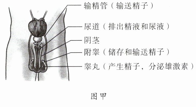 (1)分析图甲和图乙,列表总结男性和女性的生殖器官在功能上的共同点。