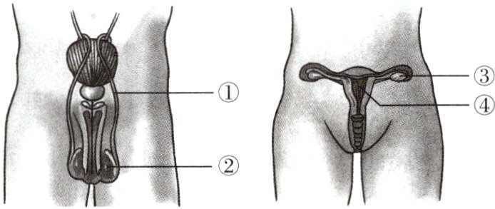 C 解析 男性产生精子并分泌雄激素的器官是②睾丸,睾丸是男性的主要生殖器官;女性产生卵细胞并分泌雌激素的器官是③卵巢,卵巢是女性的主要生殖器官。