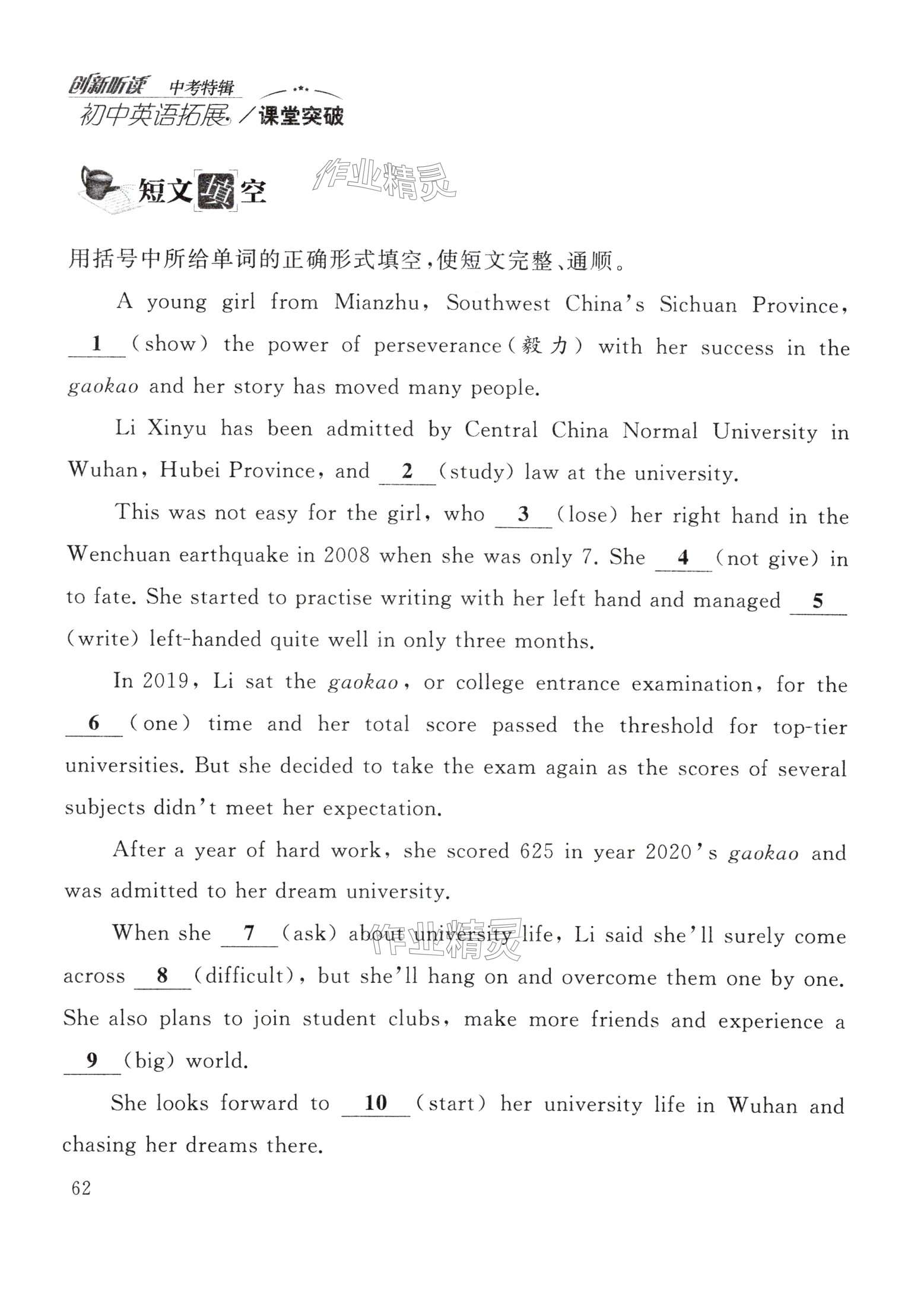 注:目前有些书本章节名称可能整理的还不是很完善,但都是按照顺序排列的,请同学们按照顺序仔细查找。练习册 2025年初中英语拓展课堂突破中考特辑 答案主要是用来给同学们做完题方便对答案用的,请勿直接抄袭。