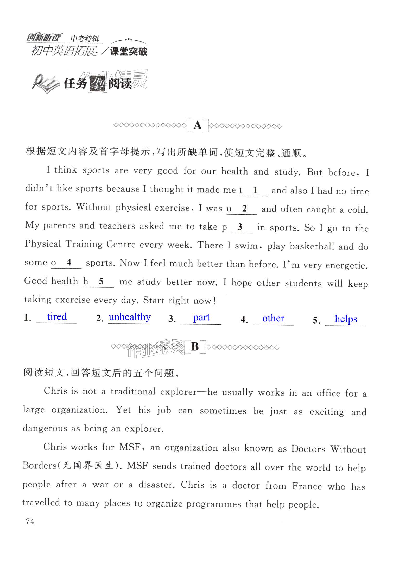 注:目前有些书本章节名称可能整理的还不是很完善,但都是按照顺序排列的,请同学们按照顺序仔细查找。练习册 2025年初中英语拓展课堂突破中考特辑 答案主要是用来给同学们做完题方便对答案用的,请勿直接抄袭。
