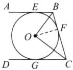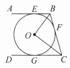 例1 如图,AB,BC,CD分别与⊙O相切于点E,F,G,且AB//CD,OB = 6 cm,OC = 8 cm. 求: