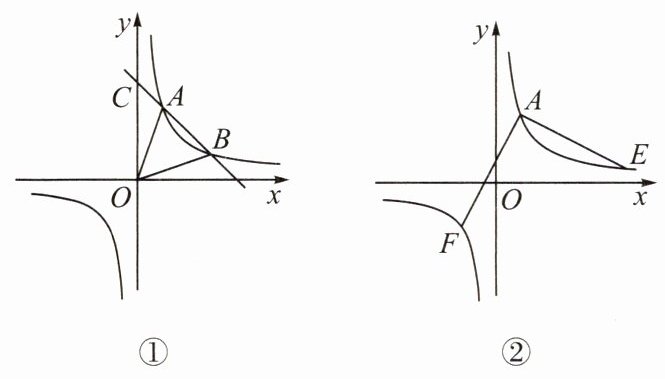 (3)如图②,$E$是反比例函数图象上点$A$右侧一点,连接$AE$,把线段$AE$绕点$A$顺时针旋转$90^{\circ}$,点$E$的对应点$F$恰好也落在这个反比例函数的图象上,求点$E$的坐标.