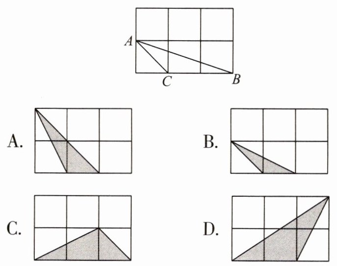 例1 如图,每个小正方形边长均为1,则下列图中的三角形(阴影部分)与图中的△ABC相似的是( )