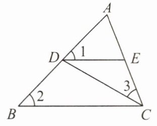 1. 如图,在△ABC中,点D在边AB上,点E在边AC上,且∠1 = ∠2 = ∠3,则与△ADE相似的三角形有( )