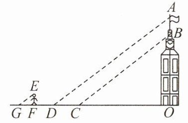 例1 小明和小华利用阳光下的影子来测量一建筑物顶部旗杆的高. 如图所示,在某一时刻,他们在阳光下分别测得该建筑物OB的影长OC为16 m,OA的影长OD为20 m,小明的影长FG为2.4 m,其中O,C,D,F,G五点在同一直线上,A,B,O三点在同一直线上,且AO⊥OD,EF⊥FG. 已知小明的身高EF为1.8 m,求旗杆的高AB.