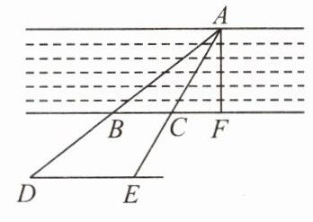 例4 为了加快城市发展,保障市民出行方便,某市在流经该市的河流上架起一座桥,连通南北,铺就城市的繁荣之路. 小明和小颖想通过自己所学的数学知识计算该桥AF的长. 如图,该桥两侧河岸平行,他们在河的对岸选定一个目标作为点A,再在河岸的这一边选出点B和点C,分别在AB,AC的延长线上取点D,E,使得DE//BC. 经测量,BC = 120 m,DE = 210 m,且点E到河岸BC的距离为60 m. 已知AF⊥BC于点F,请你根据提供的数据,帮助他们计算桥AF的长度.