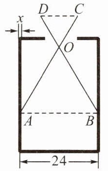 3. 如图,已知零件的外径为24 mm,现用一个交叉卡钳(AC = BD,OC = OD)测量零件的内孔直径AB. 若OC∶OA = 1∶2,量得CD = 10 mm,则零件的厚度x = ________ mm.