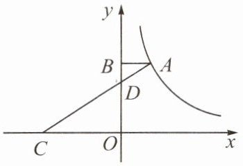 例4 如图,A 是反比例函数 y = $\frac{k}{x}$(k≠0)的图象上一点,点 B,D 在 y 轴正半轴上,△ABD 是△COD 关于点 D 的位似图形,且△ABD 与△COD 的相似比为 1 : 3,△ABD 的面积为 1,试求该反比例函数的解析式.