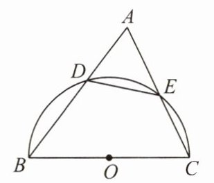 例2 如图,在锐角△ABC中,以BC为直径的半圆O分别交AB,AC于D,E两点,且S△ADE : S四边形BCED = 1 : 2,则cos∠BAC的值是( )
