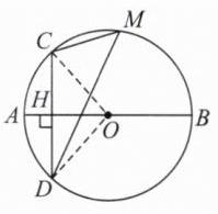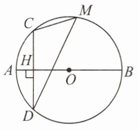 例4 如图,线段AB是⊙O的直径,弦CD⊥AB于点H,M是$\overset{\frown}{CBD}$上任意一点,AH = 2,CH = 4,求sin∠CMD的值.
