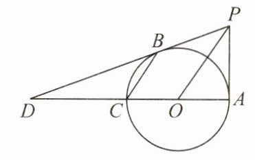 3. 如图,AC是⊙O的直径,PA⊥AC,连接OP,弦CB//OP,直线PB交直线AC于点D,BD = 2PA.