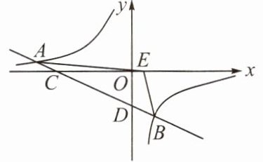 例3 如图,双曲线$y = \frac{m}{x}$与直线$y = kx + b$交于点$A( - 8,1)$,$B(2, - 4)$,与两坐标轴分别交于点$C$,$D$,已知点$E(1,0)$,连接$AE$,$BE$.