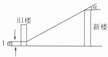 1. 如图,旧楼的一楼窗台高为1 m,在旧楼的正南处有一新楼高25 m. 已知某日中午12时太阳从正南方照射的光线与水平线的夹角为α,光线正好照在旧楼一楼窗台上,则两楼之间的距离为( )