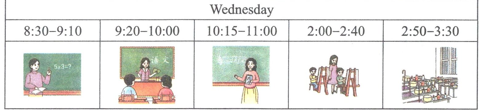 二、阅读Sandy周三的课程安排,补全下面的句子。