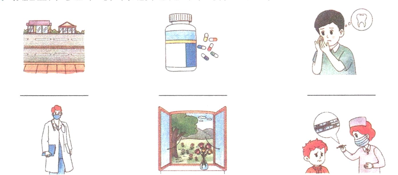 三、根据图片写出单词,并选择合适的单词补全句子。