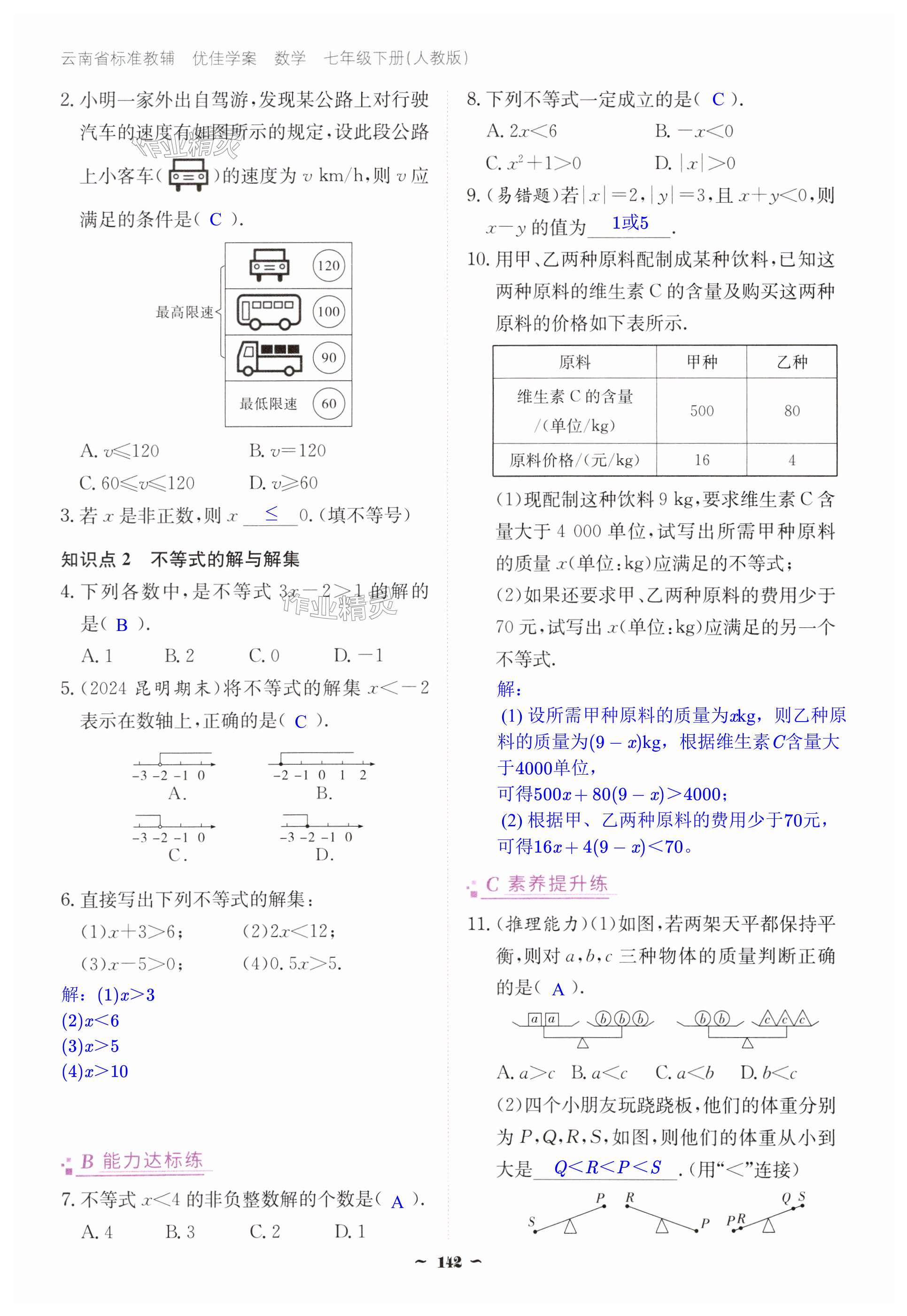 注:目前有些书本章节名称可能整理的还不是很完善,但都是按照顺序排列的,请同学们按照顺序仔细查找。练习册 2025年云南省标准教辅优佳学案七年级数学下册人教版 答案主要是用来给同学们做完题方便对答案用的,请勿直接抄袭。