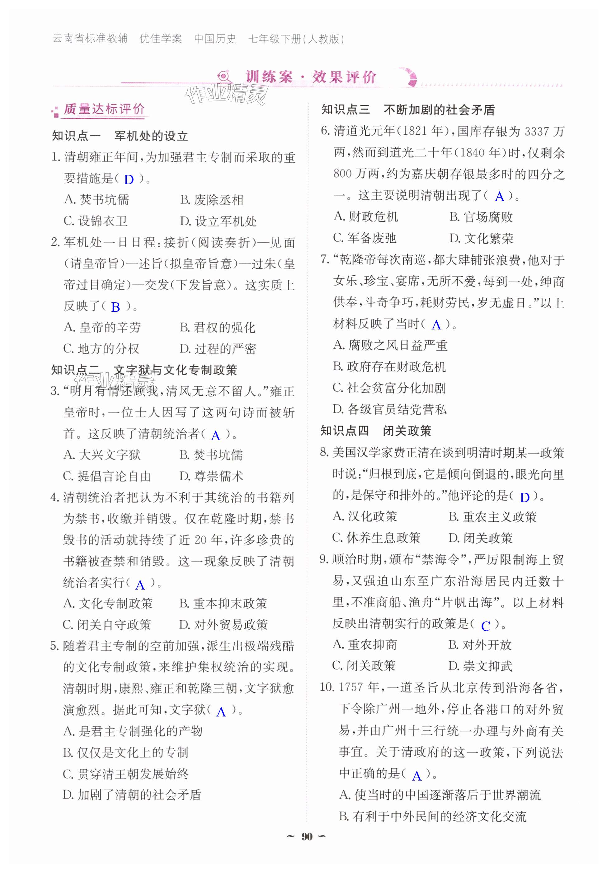 注:目前有些书本章节名称可能整理的还不是很完善,但都是按照顺序排列的,请同学们按照顺序仔细查找。练习册 2025年云南省标准教辅优佳学案七年级历史下册人教版 答案主要是用来给同学们做完题方便对答案用的,请勿直接抄袭。