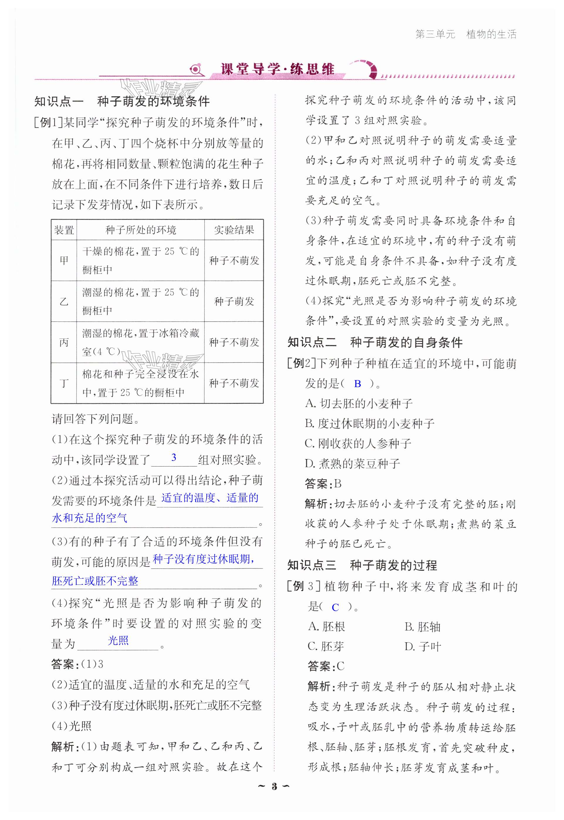 注:目前有些书本章节名称可能整理的还不是很完善,但都是按照顺序排列的,请同学们按照顺序仔细查找。练习册 2025年云南省标准教辅优佳学案七年级生物下册人教版 答案主要是用来给同学们做完题方便对答案用的,请勿直接抄袭。
