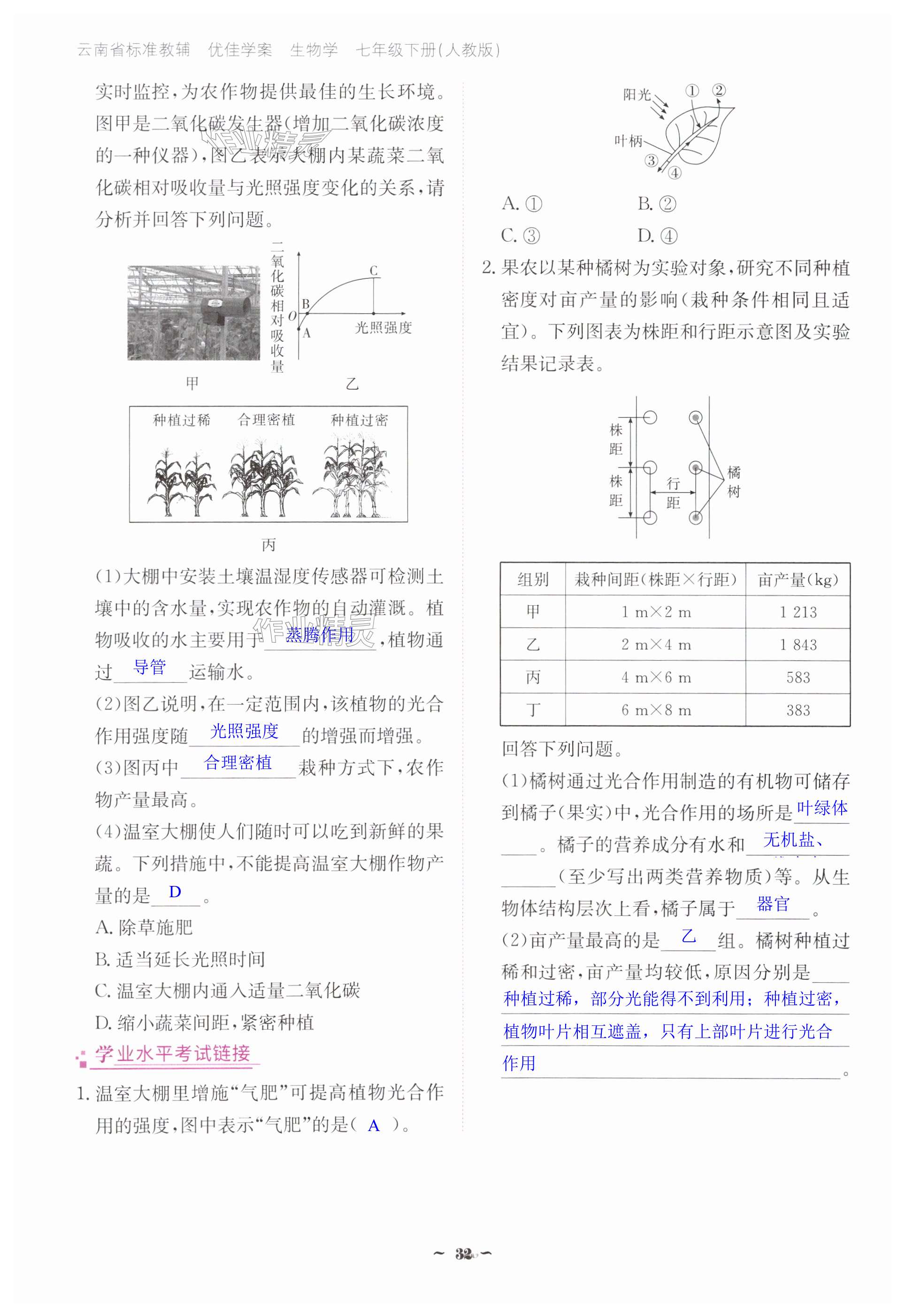注:目前有些书本章节名称可能整理的还不是很完善,但都是按照顺序排列的,请同学们按照顺序仔细查找。练习册 2025年云南省标准教辅优佳学案七年级生物下册人教版 答案主要是用来给同学们做完题方便对答案用的,请勿直接抄袭。