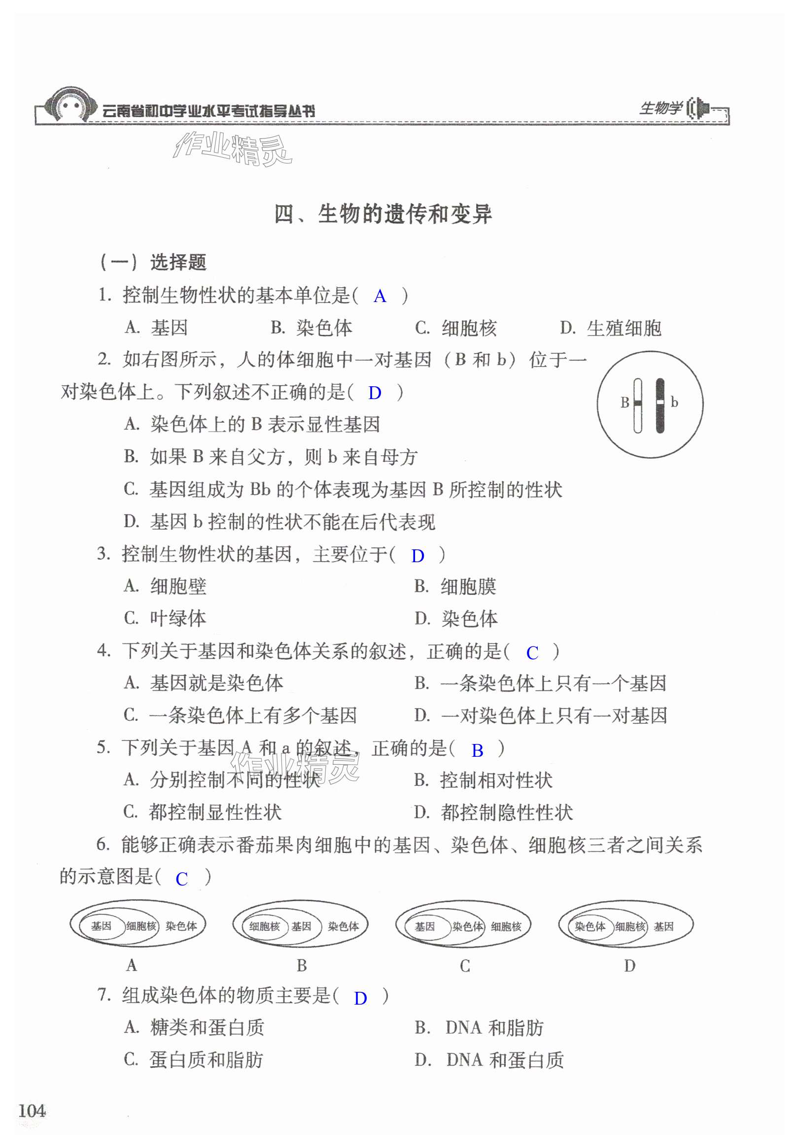注:目前有些书本章节名称可能整理的还不是很完善,但都是按照顺序排列的,请同学们按照顺序仔细查找。练习册 2025年云南省初中学业水平考试指导丛书生物中考 答案主要是用来给同学们做完题方便对答案用的,请勿直接抄袭。