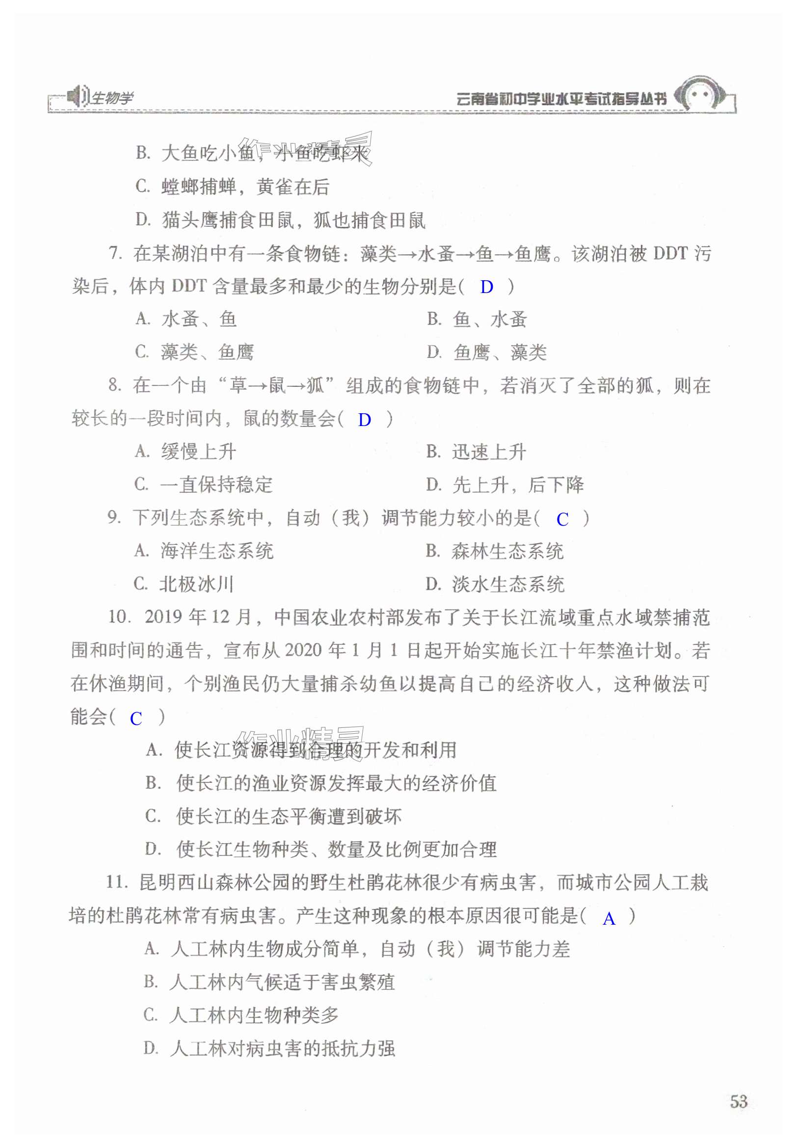 注:目前有些书本章节名称可能整理的还不是很完善,但都是按照顺序排列的,请同学们按照顺序仔细查找。练习册 2025年云南省初中学业水平考试指导丛书生物中考 答案主要是用来给同学们做完题方便对答案用的,请勿直接抄袭。