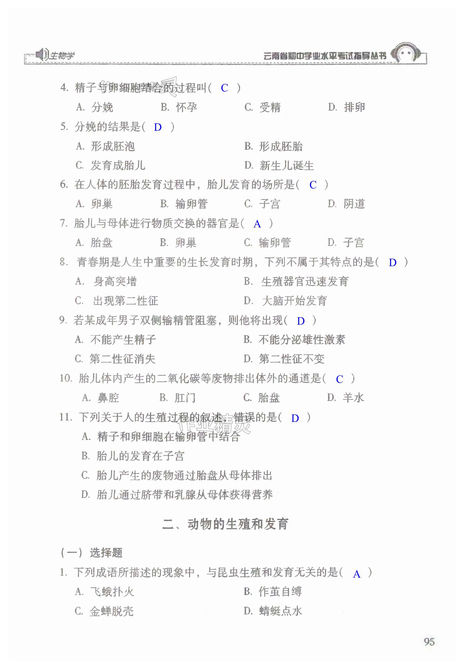 注:目前有些书本章节名称可能整理的还不是很完善,但都是按照顺序排列的,请同学们按照顺序仔细查找。练习册 2025年云南省初中学业水平考试指导丛书生物中考 答案主要是用来给同学们做完题方便对答案用的,请勿直接抄袭。