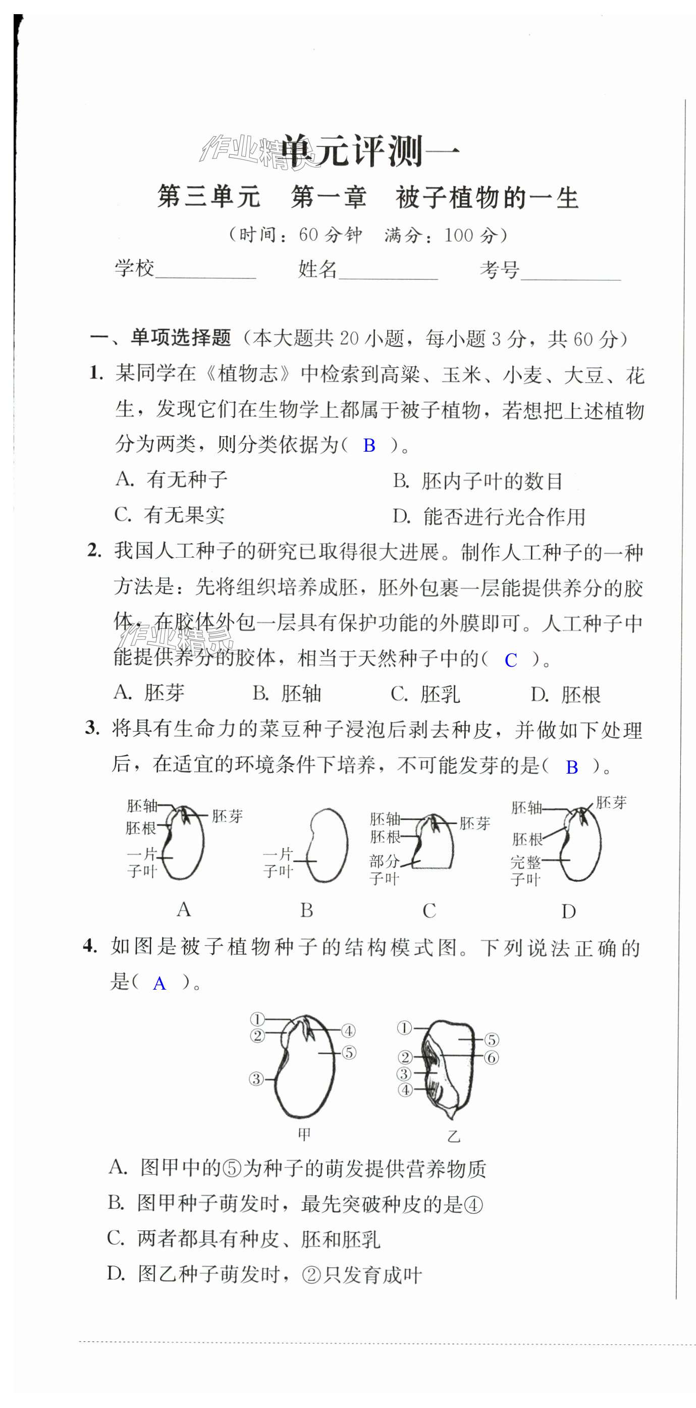 注:目前有些书本章节名称可能整理的还不是很完善,但都是按照顺序排列的,请同学们按照顺序仔细查找。练习册 2025年同步练与测七年级生物下册人教版 答案主要是用来给同学们做完题方便对答案用的,请勿直接抄袭。
