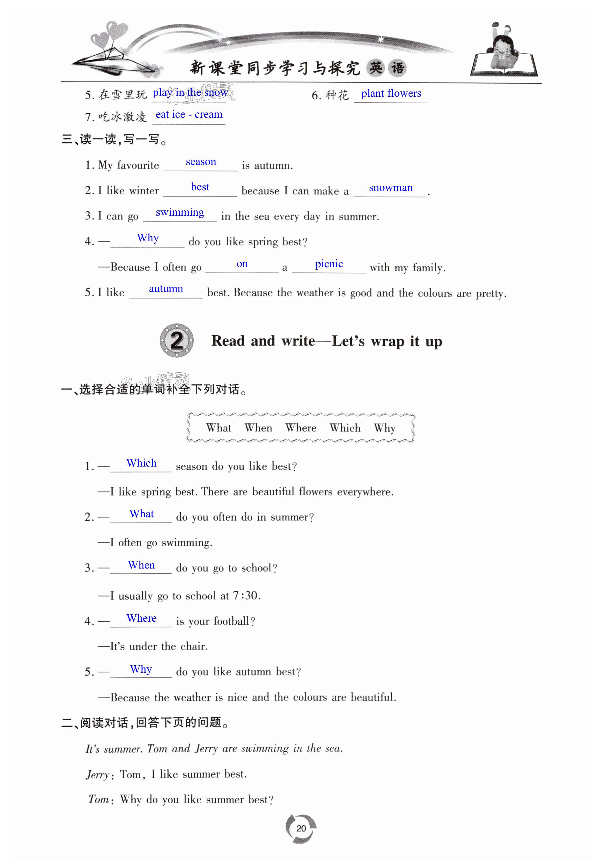 注:目前有些书本章节名称可能整理的还不是很完善,但都是按照顺序排列的,请同学们按照顺序仔细查找。练习册 2025年新课堂同步学习与探究五年级英语下册人教版 答案主要是用来给同学们做完题方便对答案用的,请勿直接抄袭。