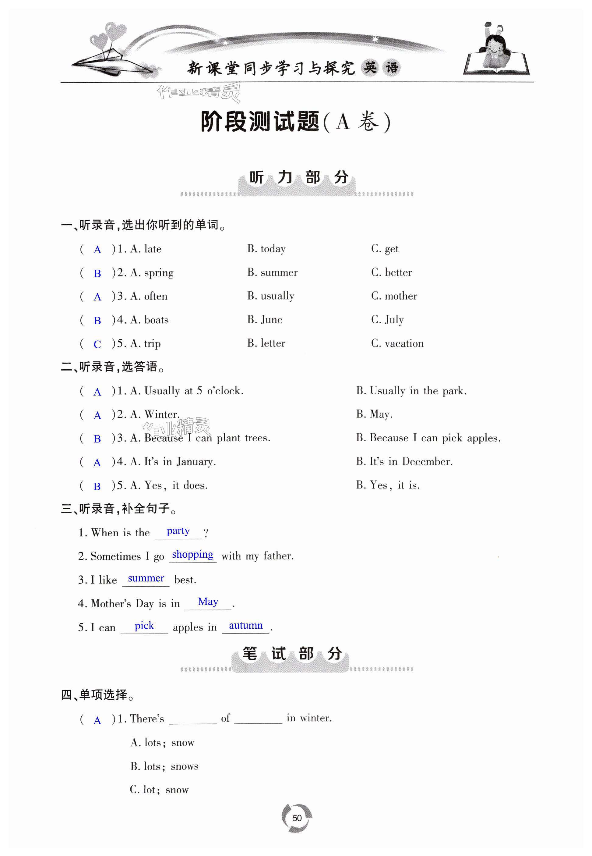 注:目前有些书本章节名称可能整理的还不是很完善,但都是按照顺序排列的,请同学们按照顺序仔细查找。练习册 2025年新课堂同步学习与探究五年级英语下册人教版 答案主要是用来给同学们做完题方便对答案用的,请勿直接抄袭。