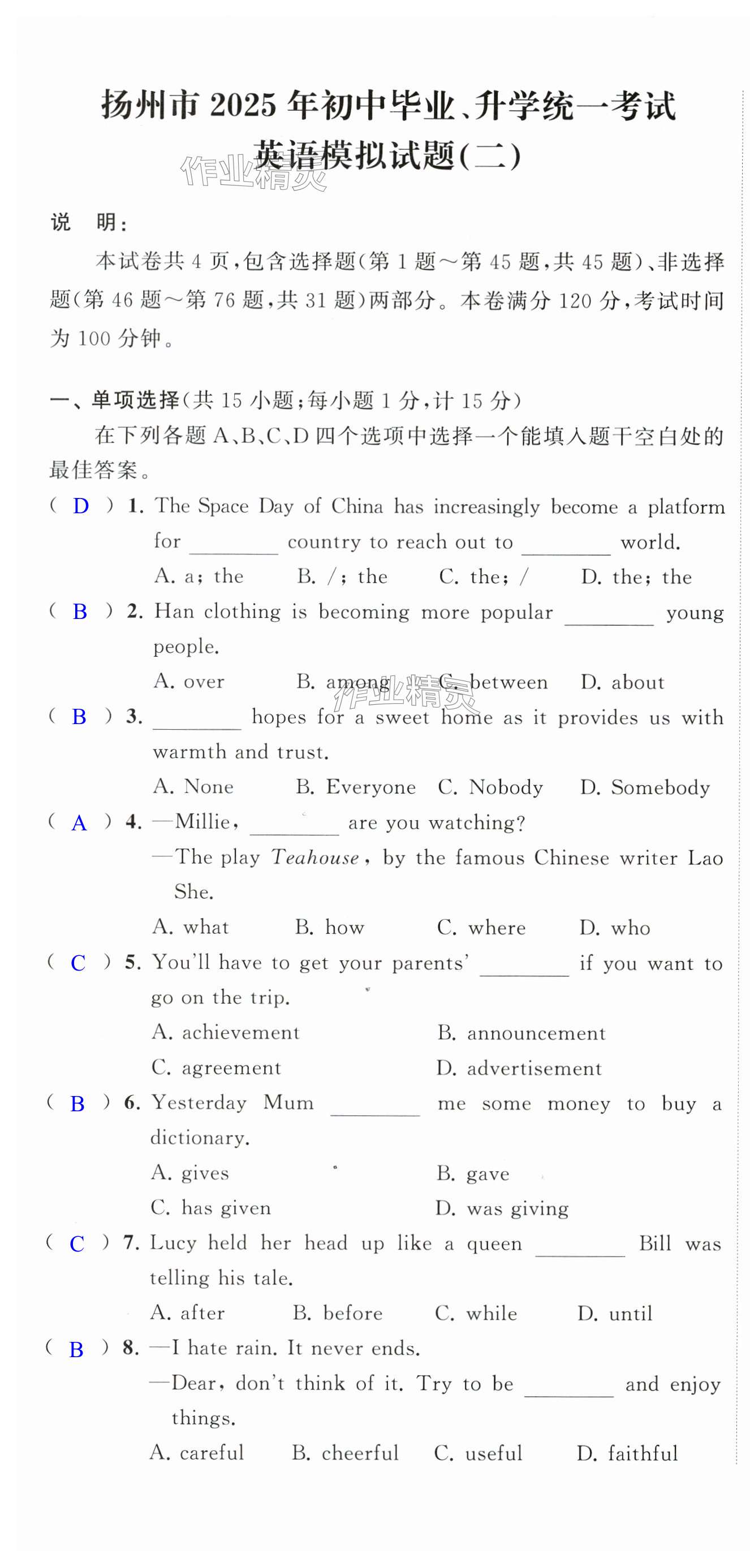 注:目前有些书本章节名称可能整理的还不是很完善,但都是按照顺序排列的,请同学们按照顺序仔细查找。练习册 2025年多维互动提优课堂中考模拟总复习英语加强版 答案主要是用来给同学们做完题方便对答案用的,请勿直接抄袭。