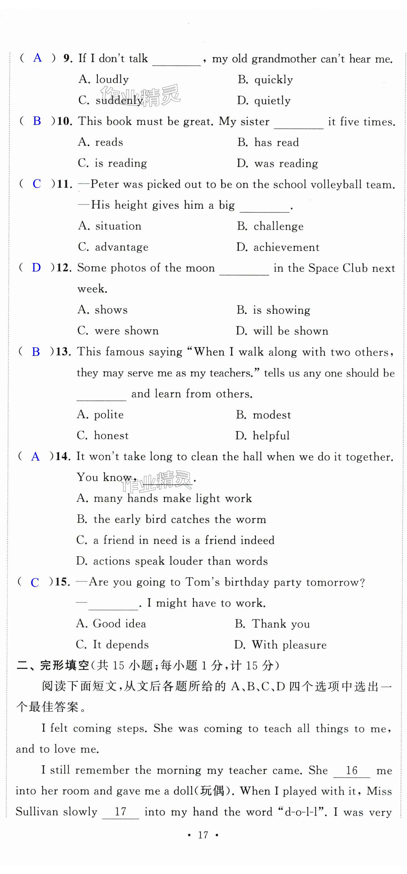 注:目前有些书本章节名称可能整理的还不是很完善,但都是按照顺序排列的,请同学们按照顺序仔细查找。练习册 2025年多维互动提优课堂中考模拟总复习英语加强版 答案主要是用来给同学们做完题方便对答案用的,请勿直接抄袭。