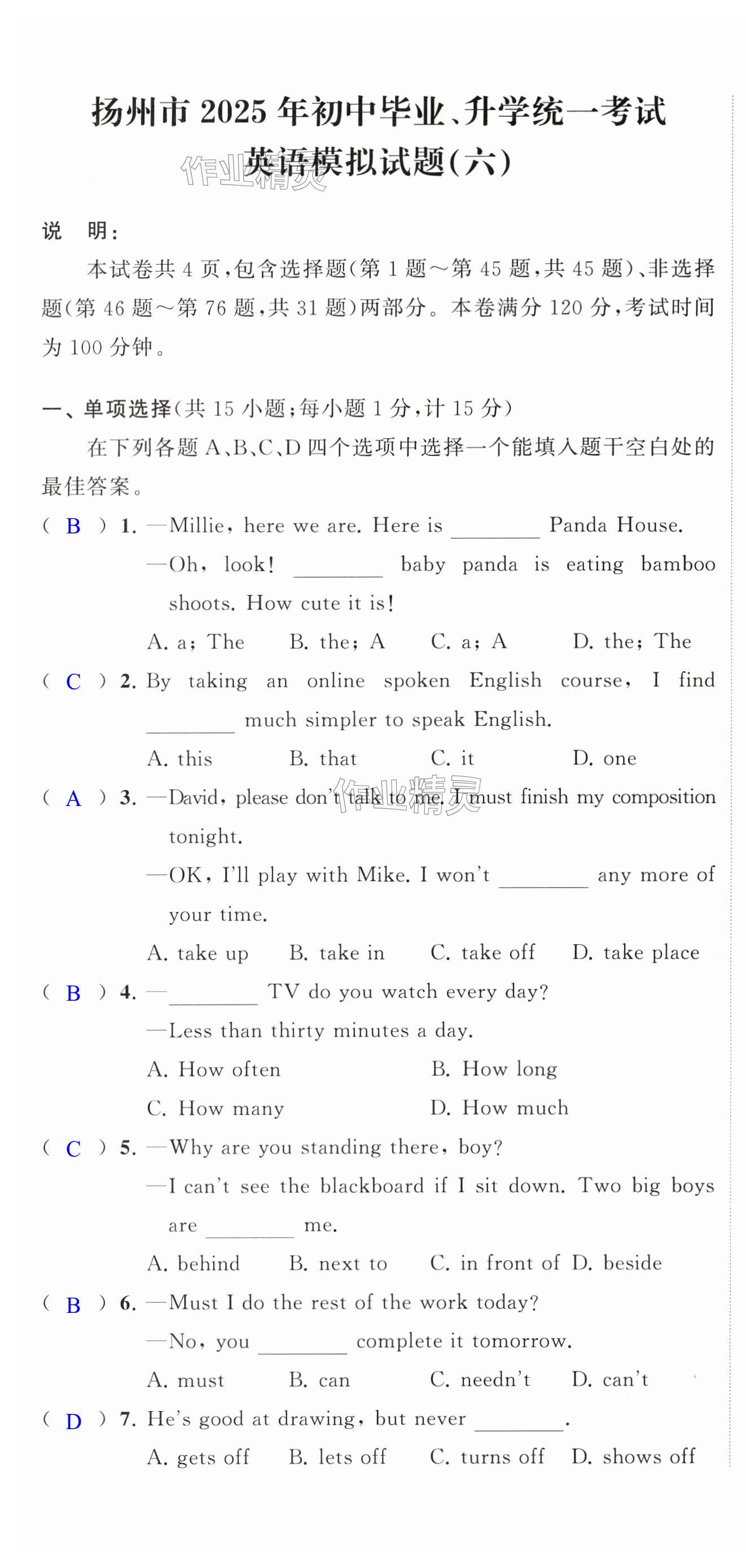 注:目前有些书本章节名称可能整理的还不是很完善,但都是按照顺序排列的,请同学们按照顺序仔细查找。练习册 2025年多维互动提优课堂中考模拟总复习英语加强版 答案主要是用来给同学们做完题方便对答案用的,请勿直接抄袭。