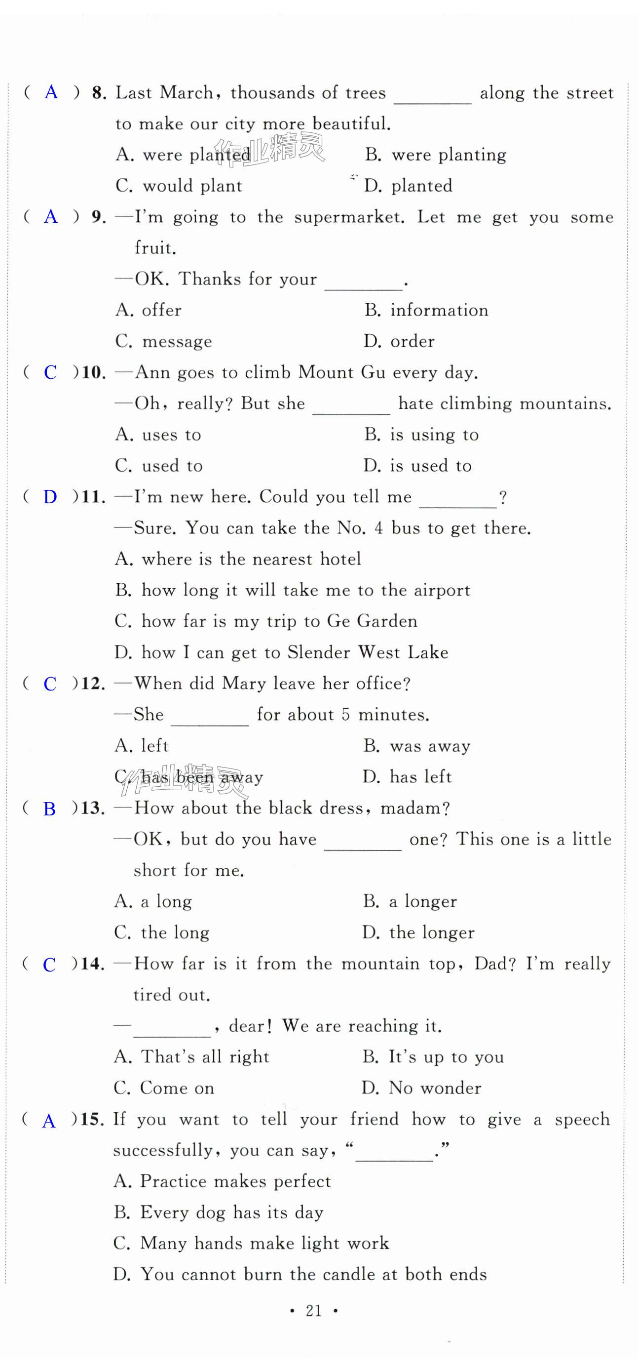 注:目前有些书本章节名称可能整理的还不是很完善,但都是按照顺序排列的,请同学们按照顺序仔细查找。练习册 2025年多维互动提优课堂中考模拟总复习英语加强版 答案主要是用来给同学们做完题方便对答案用的,请勿直接抄袭。