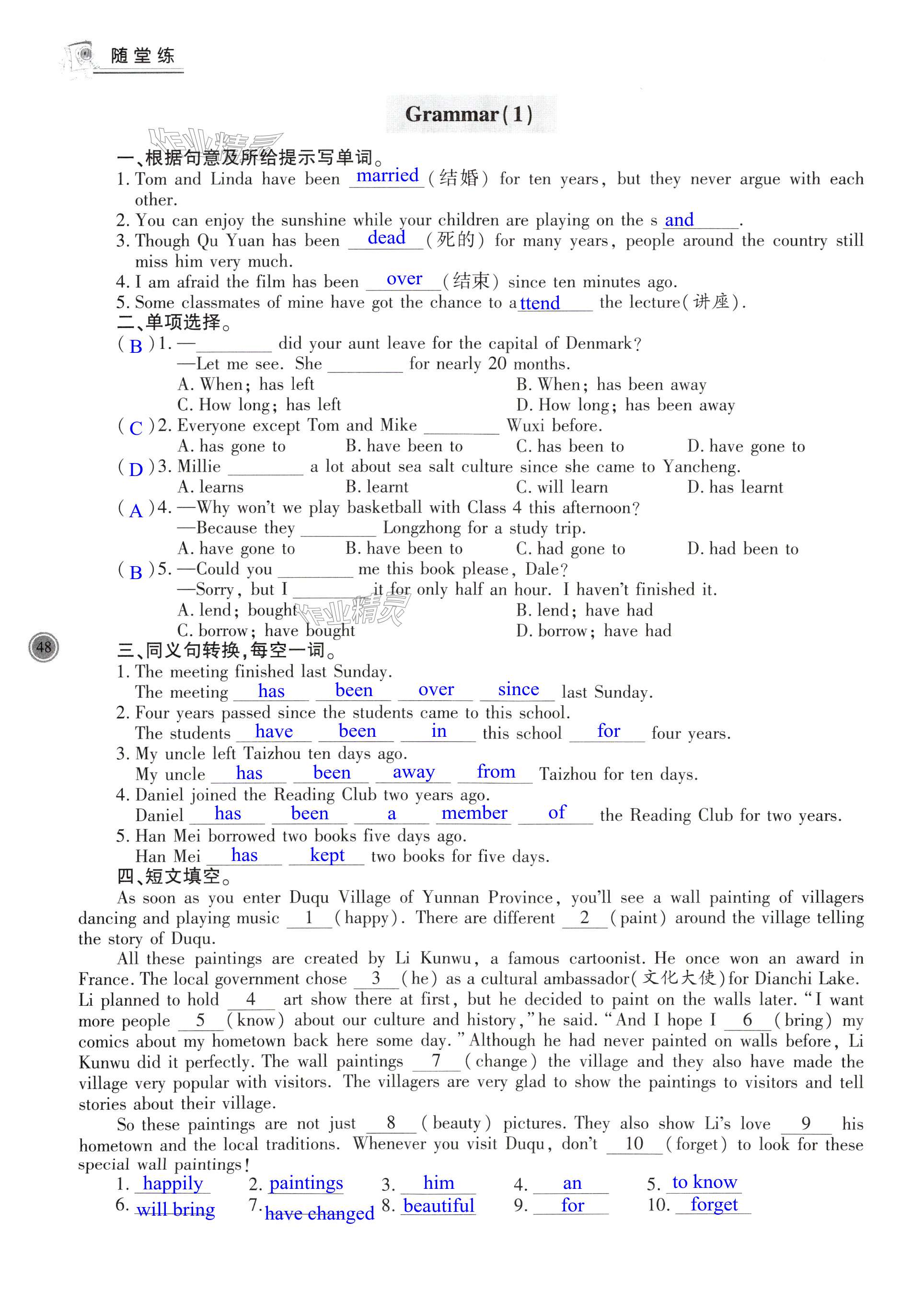 注:目前有些书本章节名称可能整理的还不是很完善,但都是按照顺序排列的,请同学们按照顺序仔细查找。练习册 2025年一对一大讲堂八年级英语下册译林版 答案主要是用来给同学们做完题方便对答案用的,请勿直接抄袭。