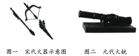 4. [2024太原期末]南宋初,有人将火药装在竹管里,制造出竹管火枪;南宋后期,又有人发明了在竹管里装有弹丸的突火枪。元朝用金属作筒,取代竹筒,发明了火铳。这说明 ( )