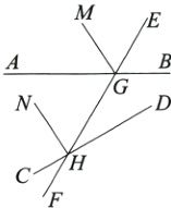11. [2024朔州期中]如图,直线AB,CD分别交EF于G,H两点,GM平分∠AGE,HN⊥CD于点H,且∠EHD = 1/2∠EGB,∠BGH = 120°.
