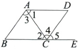 10. 如图,下列条件:①∠B + ∠BAD = 180°;②∠1 = ∠2;③∠3 = ∠4;④∠B = ∠5.其中能判定AB//CD的条件有________.(填写序号)