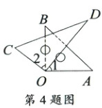 4.已知两个直角三角尺如图所示放置,直角顶点重合,∠AOB=∠DOC=90°,由此可得∠1=∠2,其依据是 ( )
