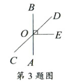 3.如图,已知直线AB和CD相交于点O,OE⊥AB于点O,若OD平分∠BOE,则∠AOC的度数为 ( )