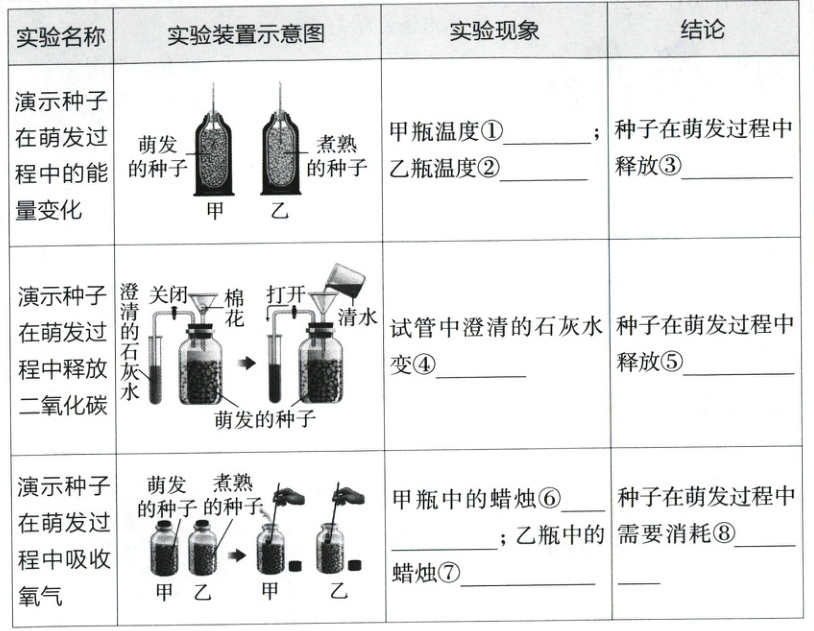 ①升高 ②基本不变 ③能量 ④浑浊 ⑤二氧化碳 ⑥熄灭 ⑦正常燃烧 ⑧氧气